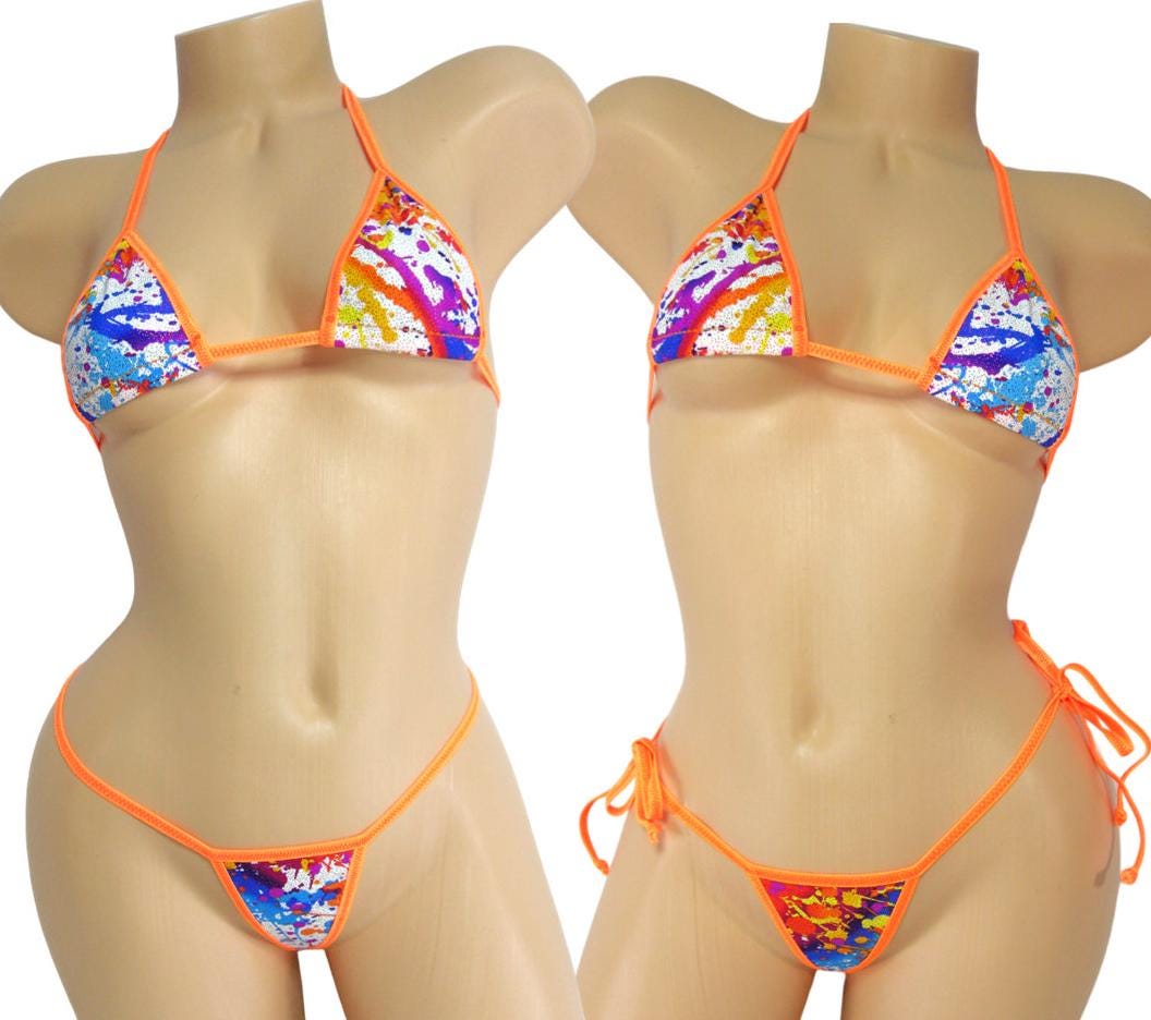 Micro bikini with choice of G-string Holographic paint splatter USA made S/M