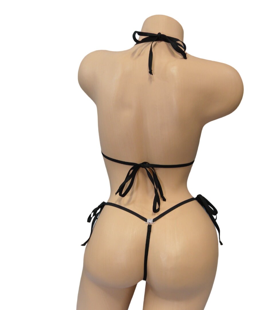 2pc bikini with an adjustable sliding triangle top & Choice of G-string bottom- Fixed or Side Tie.