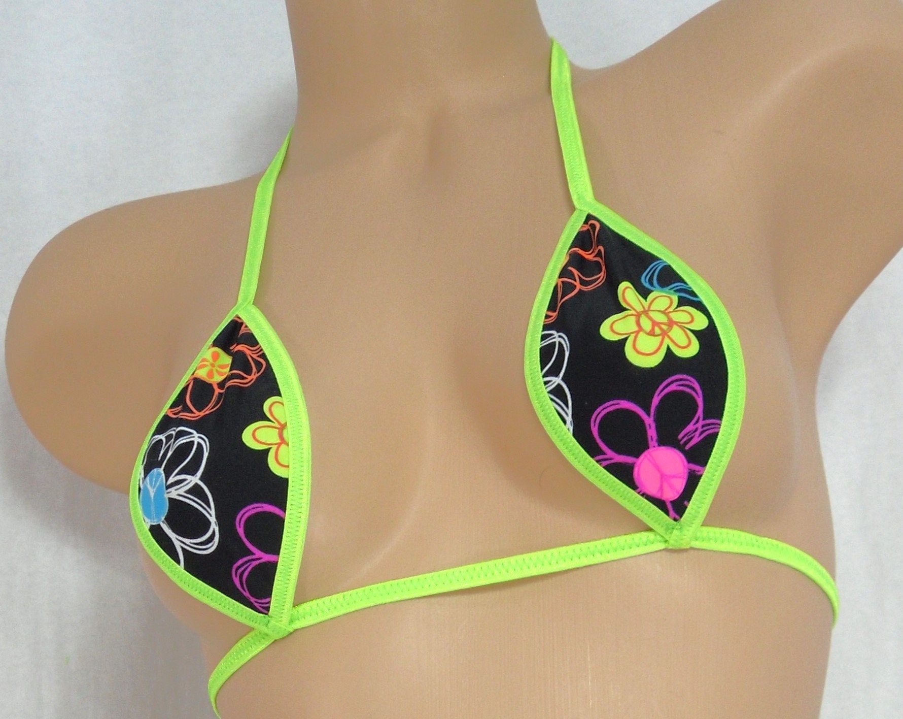 • Micro Scrunch Butt w/Choice of Top-Wild Neon Daisies- Neon Green Trim-S/M