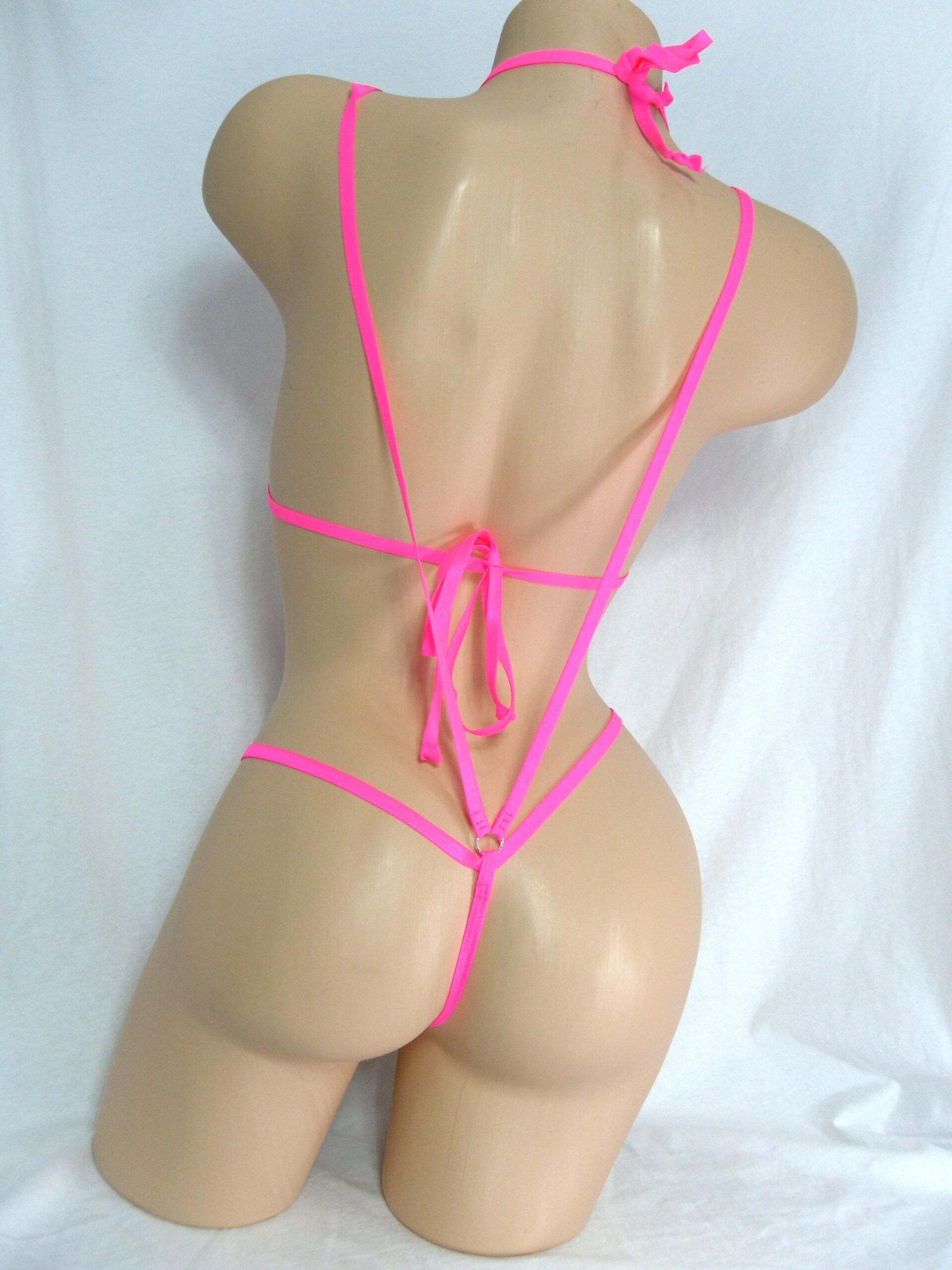 2pc bikini with an adjustable sliding triangle top & slingshot G-string combo bottom.